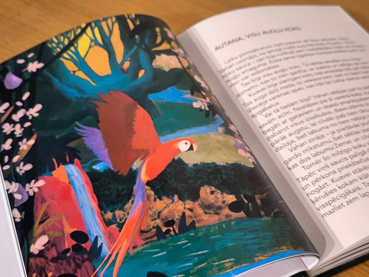 Aicinām paviesoties zem, starp un virs pasaku lapotnes, kurai savu redzējumu piešķīrusi arī slovēņu dzejniece un tulkotāja Klarisa Jovanoviča, bet pasakas krāsās iedzīvinājis ilustrators Marko Rops.