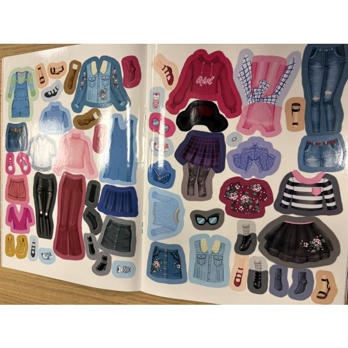 Grāmatā iekļautas vairāk nekā 100 atkārtoti lipināmas uzlīmes, ar kuru palīdzību var ietērpt 28 modeles. Grāmatas ievaddaļā sniegti arī stila veidošanas ieteikumi.