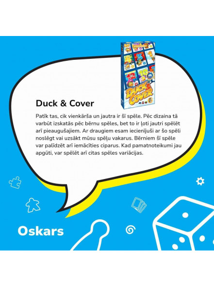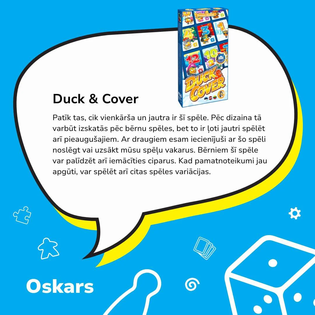Duck & Cover ir 20 minūšu gara un amizanta spēle, kurā cenšaties, lai no vannas izlīst pēc iespējas mazāk ūdens. Bet tās pīles tikai turpina šļakstīties un šļakstīties!