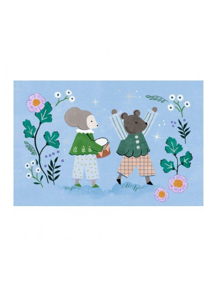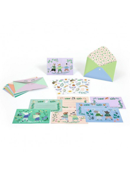 Komplekts, lai izveidotu krāšņus ielūgumus dzīvnieku tematikā. Komplektā ietilpst 8 ilustrētas ielūgumu kartiņas (4 x 2) (14.5 x 9.5 cm), 8 ilustrētas aploksnes (4 x 2) (16 x 11 cm) un 2 lapas ar uzlīmēm. Izgatavots no augstas kvalitātes papīra.