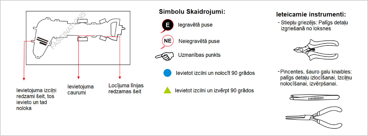 Konstruktora shēmas simbolu tulkojums atrodams produkta attēlos