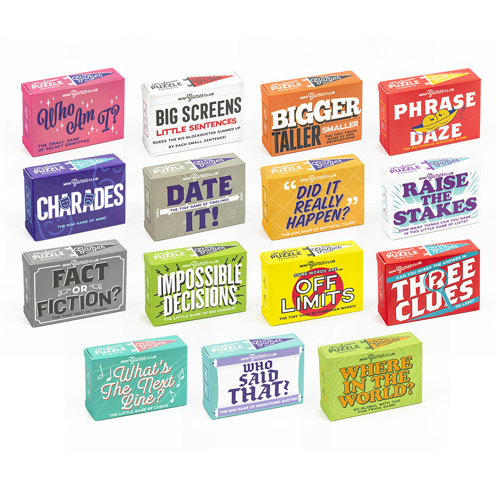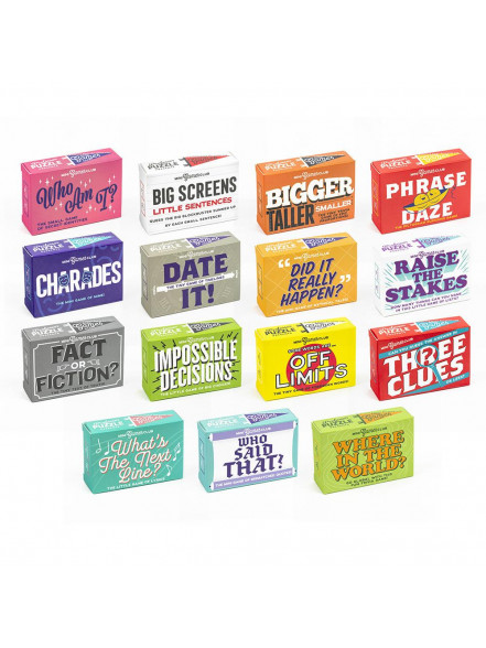 Šīs kabatas izmēra spēles, kas izstrādātas, domājot par mūsu vislabāk pārdotajām sērkociņu kastītēm, noteikti būs liels hits šajā sezonā! Šīs piecpadsmit dažādās pick-up-and-play spēles ietver daudz labi zināmu klasiku, piemēram, faktus vai daiļliteratūru, šarādes un nākamās dziesmas rindas uzminēšanu, kas sajauktas ar dažām lieliskām jaunām idejām. Visi ir tūlītējas atskaņošanas priekšmeti, kuriem ir nepieciešama neliela vai nekāda instrukcija.