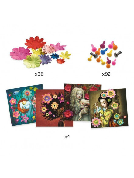 Lai pilnveidotu dotos attēlus, izmanto daudzveidīgās papīra ziedlapiņas! Tās var viegli izvietot uz dotajām pamatnēm, izmantojot glītus, krāsainus stiprinājumus. Izrotā skaistās un mistiskās varones ar grezniem ziediem un piešķir attēliem telpiskumu! Vairāk nekā 90 papīra ziedlapiņu, kas jau iepriekš izgrieztas dažādās formās. Viegla piestiprināšana, pateicoties skaistajām piespraudēm. Komplektā ietilpst 4 pamatnes ar iestrādātiem caurumiem (20 x 20 cm), vairāk kā 90 papīra ziedlapiņu, 36 saspraudes un detalizēta pamācība, kas soli pa solim parādīs, kā sasniegt izcilu rezultātu. Piemērots bērniem no 6 līdz 10 gadu vecumam.