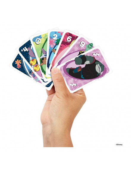 Disney Lilo un Stitch faniem patiks spēlēt ar šo tematisko UNO kāršu spēli. Ar klāju ar grafiku, kas iedvesmota no iecienītākajiem varoņiem un ainām, spēlētāji cenšas saskaņot krāsas un skaitļus - ir pat īpašs "Ohana" noteikums, kas beidzas ar to, ka visiem spēlētājiem rokā ir četras kārtis! Un, kad esat līdz pēdējai kartei, neaizmirstiet kliegt "UNO!" Lieliska dāvana Disney Lilo un Stitch faniem un kāršu spēļu cienītājiem no 7 gadu vecuma. Krāsas un rotājumi var atšķirties.- Spēlētāji: 2-10- Vecums: 7+- Daudzvalodu instrukcijas