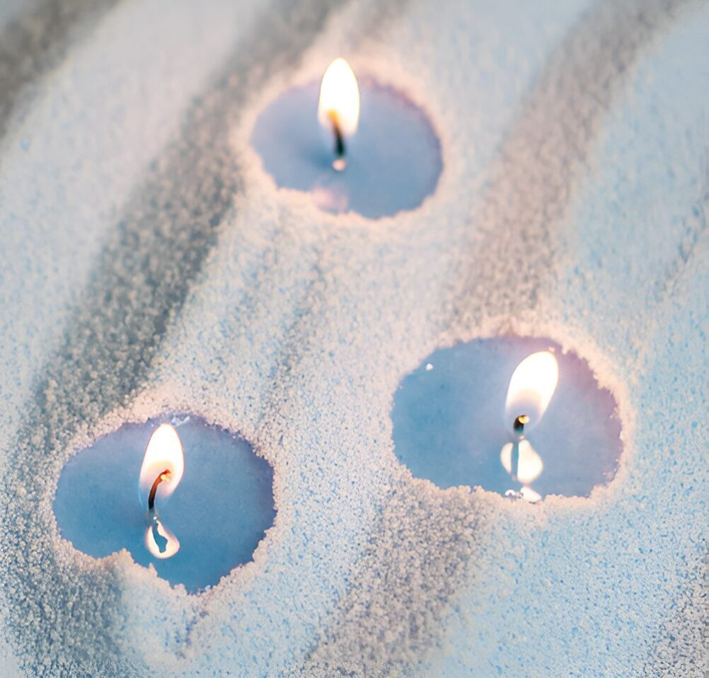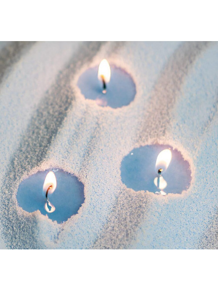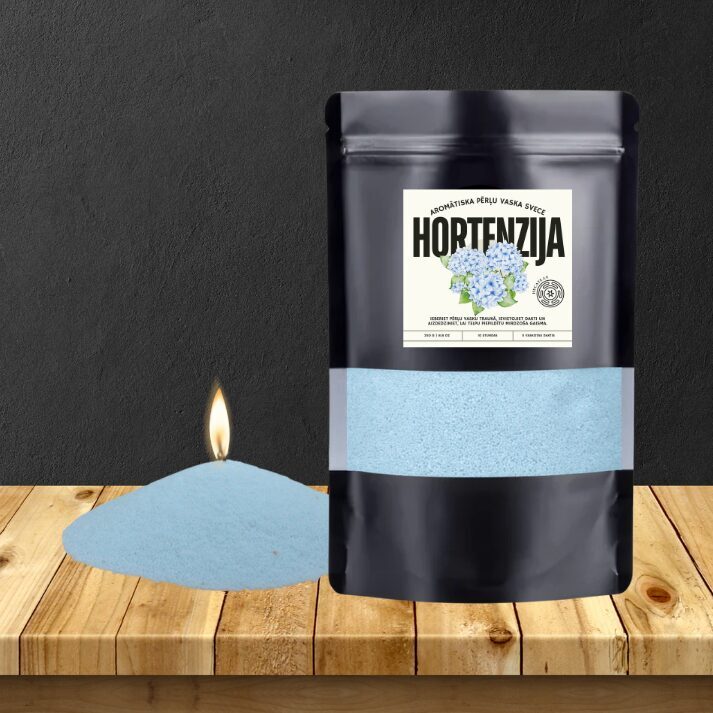 Pērļu vasks degs arī iebērts traukā ar ūdeni, radot lielisku telpas dekoru.