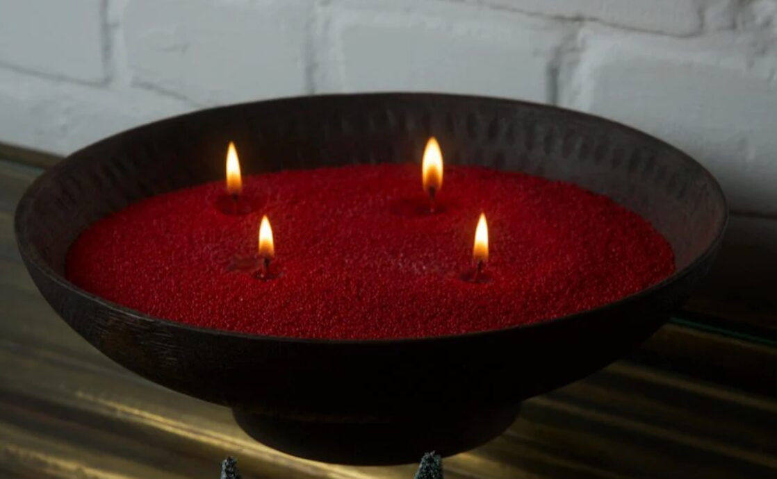 Pērļu vasks degs arī iebērts traukā ar ūdeni, radot lielisku telpas dekoru.