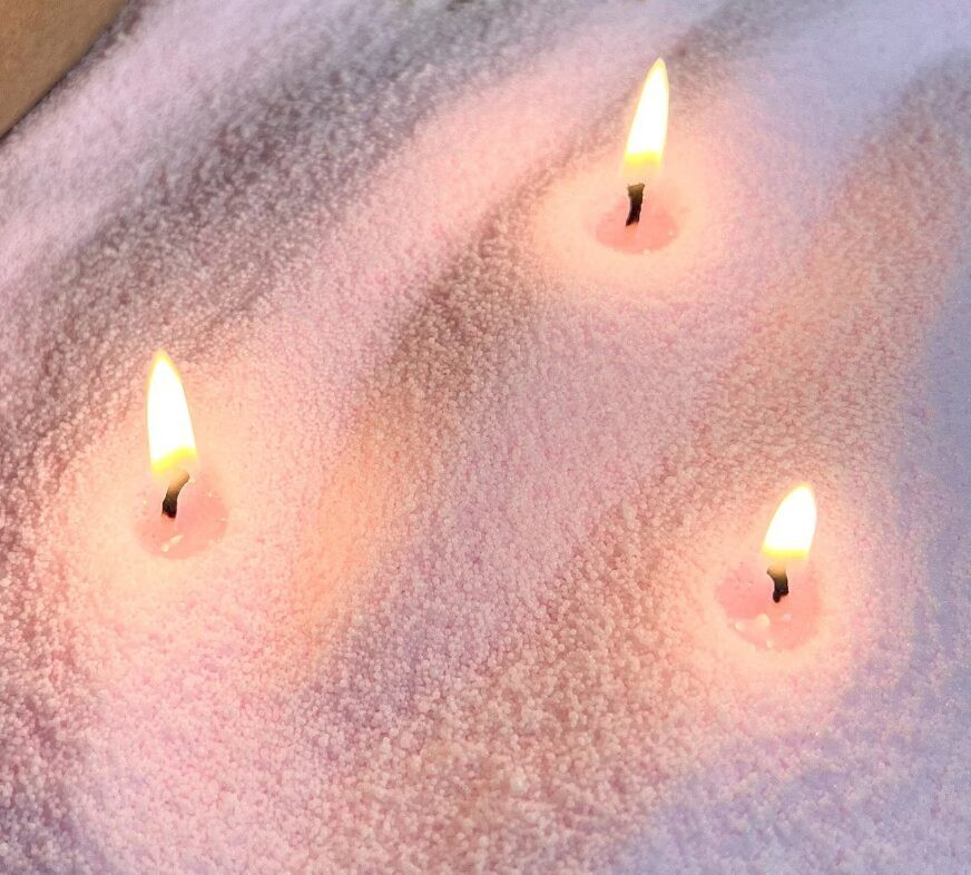 Pērļu vasks degs arī iebērts traukā ar ūdeni, radot lielisku telpas dekoru.