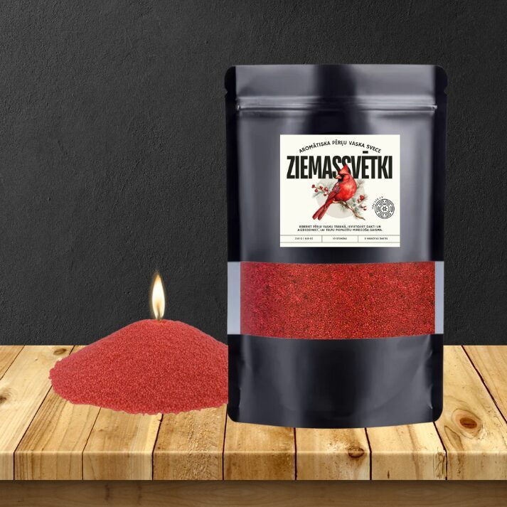 Radiet svētku noskaņu ar pērļu sveci Ziemassvētki! Sarkana svece ar burvīgu Ziemassvētku garšvielu aromātu, kas piepildīs jūsu māju ar siltumu un mieru. Lieliski piemērota mājas interjeram vai dāvanai.