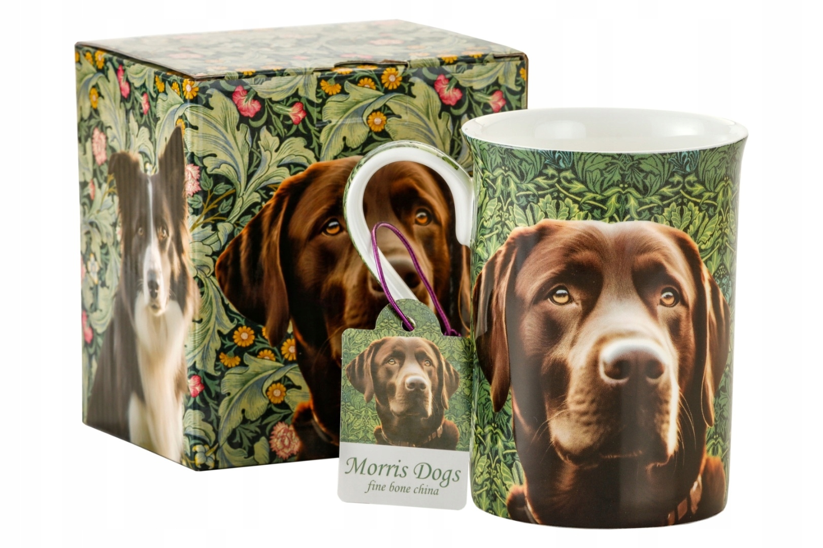Ekskluzīva krūze ar klasisku formu no Marco Polo sērijas Morris Dogs. Krūze ar ietilpību 430 ml (tilpums ieskaitīts līdz krūzes malai). Krūze ir izgatavota no augstākās kvalitātes kaulu porcelāna un dekorēta ar jauka šokolādes labradora retrīvera suņa motīvu uz zaļa fona (fona motīvs ņemts no Viljama Morisa gleznas). Trauku mazgājamā mašīna un mikroviļņu krāsns. Iepakots dekoratīvā kartona kastē.