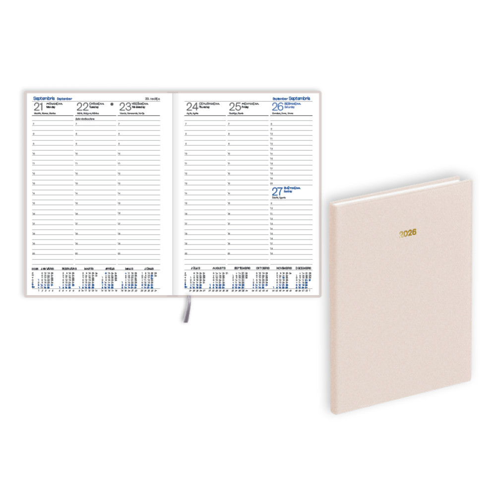 K/2026 Dienasgrāmata PRESTIGE, mākslīgā āda ar tekstūru, bēšs