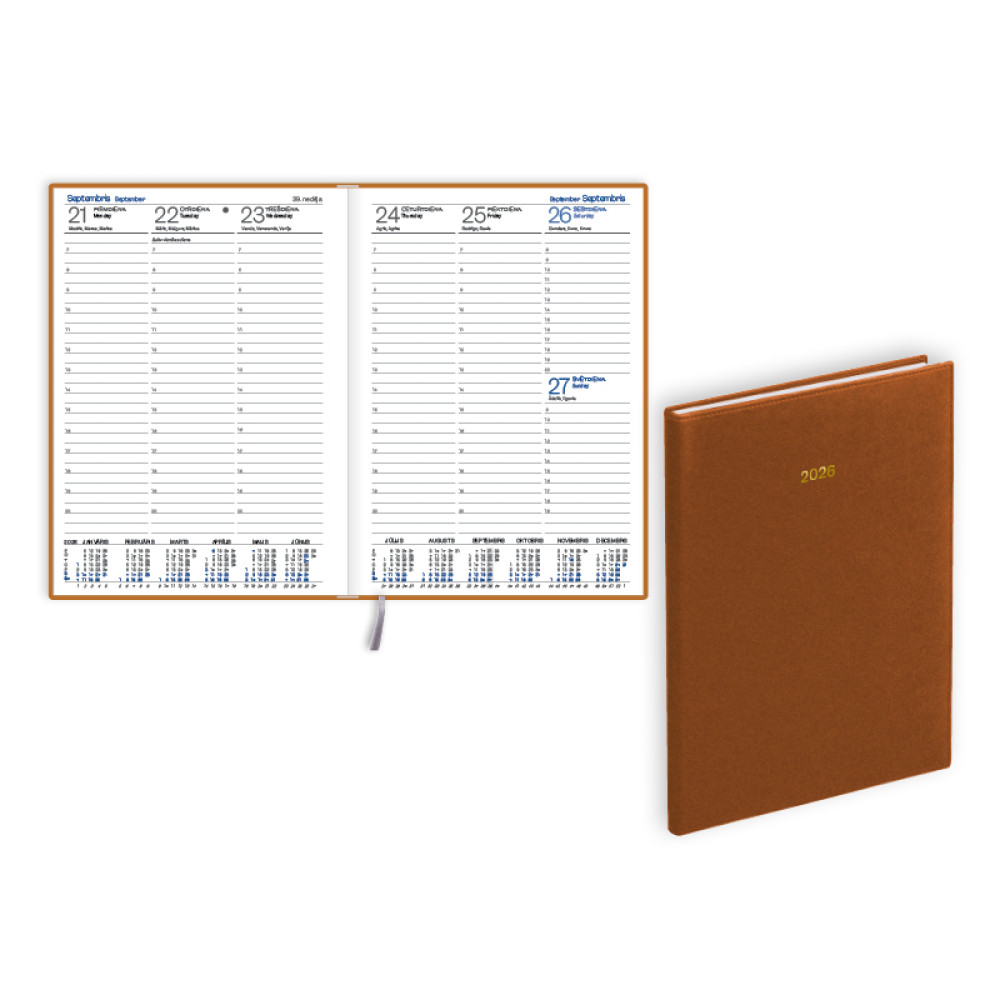 K/2026 Dienasgrāmata PRESTIGE, mākslīgā āda ar tekstūru, brūns