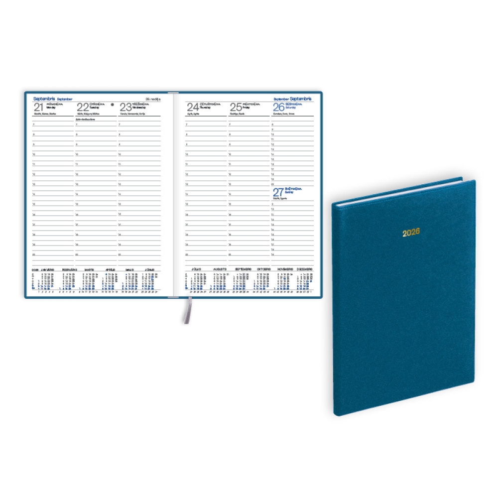 K/2026 Dienasgrāmata PRESTIGE, mākslīgā āda ar tekstūru, gaiši zils