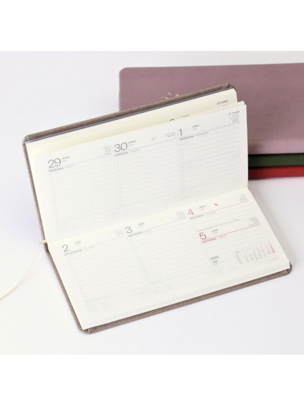 LADY soft plānotāja atvērumā redzama viena nedēļa, mēnesfāze, mēneša kalendārs. Pieejams dažāda dizaina elastīgos mākslīgās ādas vākos, dizaina elementi ar mirdzošu folijas uzspiedumu. Patīkami pieskārienam!