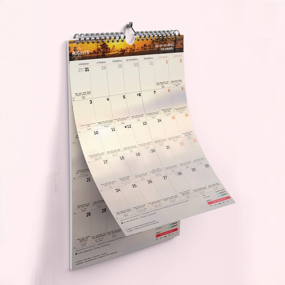 Lielais Uzvārdu Kalendārs aizņemtiem cilvēkiem, kuriem jāplāno savs laiks un ģimenēm ar bērniem ērtākai ikdienas notikumu plānošanai, ko ērti būs pierakstīt ar iekļauto pildspalvu.