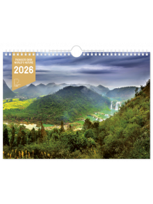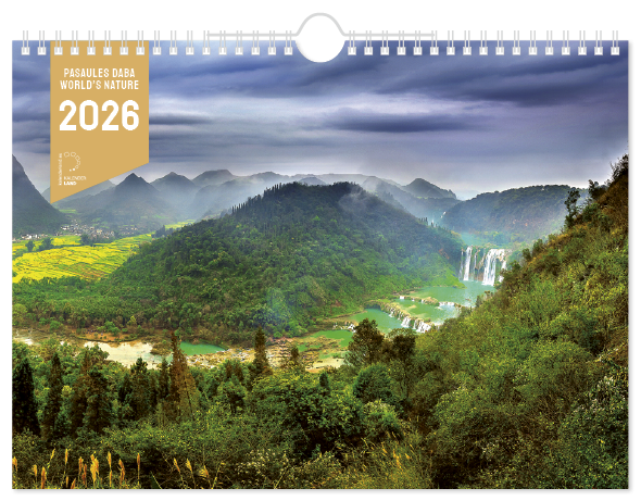 Kalendārs 2026.gadam ar skaistām pasaules dabas ainavu fotogrāfijām.