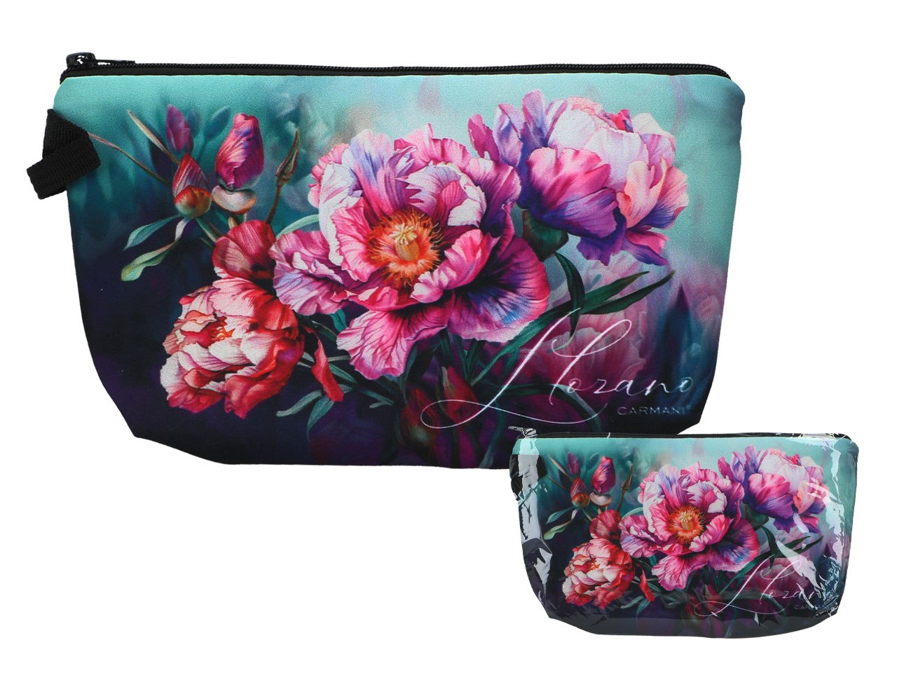 Kosmētikas soma rokassomai ar ziedu rakstu.