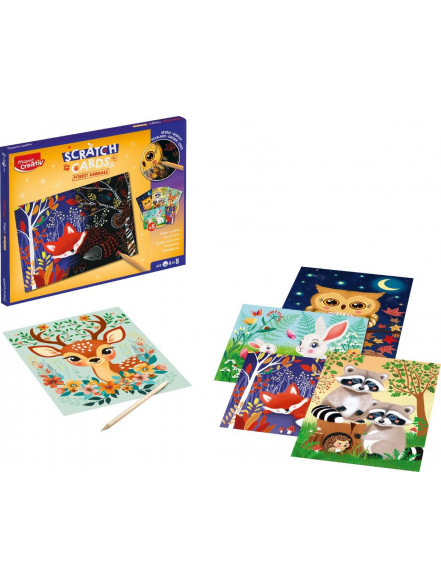 Komplektā ir 5 ilustrētas skrāpējamās kartītes ar dažādiem meža dzīvniekiem. Bērni var izvēlēties noskrāpēt visu attēlu vai atstāt daļu melnā fona, veidojot interesantus kontrastus un unikālus mākslas darbus. Katrs rezultāts ir neatkārtojams!