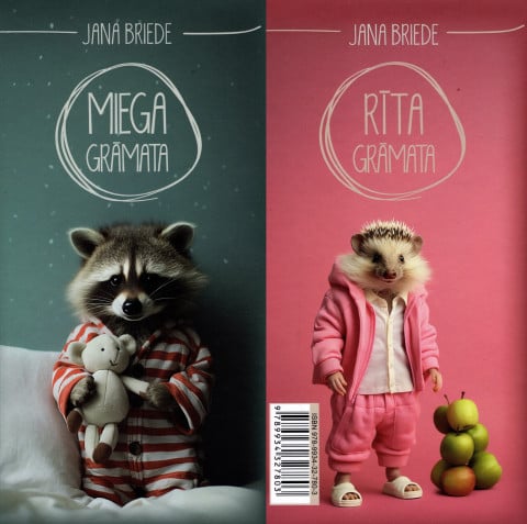 Šī ir neparasta grāmata – tā ir lasāma no abām pusēm. No viena gala var lasīt dzejoļus, kas noskaņo miedziņam, bet no otra gala – draiskus pantus, kas palīdzēs mundri un priecīgi iesākt jaunu dienu. Košos, sirsnīgos attēlus, kuros atveidoti cilvēkbērniem līdzīgi dzīvnieku mazulīši, autore radījusi ar programmas Midjourney palīdzību. Jana Briede ir dizainere un māksliniece, kas ikdienā darbojas ar īpaši smalku un aizraujošu mākslas veidu – telpisko miniatūru veidošanu uzņēmuma “Small Stuff” paspārnē. “Small Stuff” sadarbojas ar skolām un piedāvā bērniem ne tikai aplūkot izstādes, bet arī piedalīties meistarklasēs.