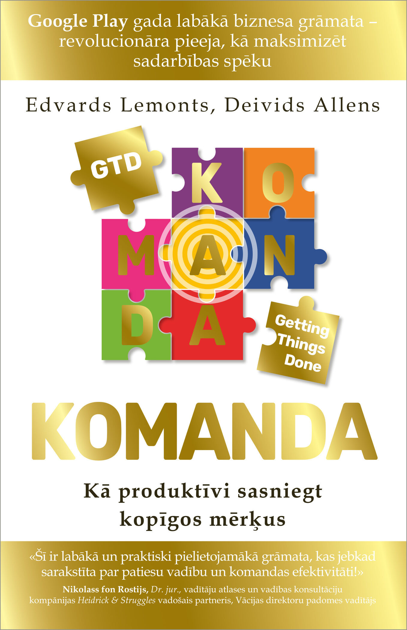 "Deivida Allena un Evarda Lemonta grāmata "KOMANDA: Kā produktīvi sasniegt kopīgos mērķus" sniedz skaidru, strukturētu un praksē viegli pielietojamu pieeju komandas darba uzlabošanai. Autori pārliecinoši parāda, kā GTD principi var palīdzēt komandām veidot pārskatāmus procesus, precīzi definēt mērķus un efektīvi sadalīt atbildības. Grāmata izceļas ar sistēmisku skatījumu un dod noderīgus rīkus, lai uzlabotu koordināciju un vienotu komandas fokusu. Es uzskatu, ka tā būs vērtīgs resurss ikvienam vadītājam, kas vēlas paaugstināt komandas produktivitāti un radīt stabilu pamatu ilgtspējīgai sadarbībai.