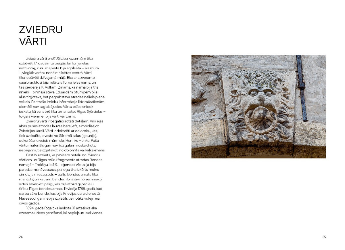 Grāmata, kas veltīta restorāna 15 gadu jubilejai, sastāv no trim daļām – Restorāns, Receptes, Rīga. Pirmā daļa sniedz izsmeļošu ieskatu par laiku, kad restorāns tapa, tā stāsta par šefpavāriem, kas katrs ar savu rokrakstu veidojuši restorāna ēdienkarti. Otrajā ir apkopotas viņu iecienītākās receptes, savukārt trešā veidota kā Rīgas gids. Īsi, bet izziņas bagāti stāsti par tuvāko apkārtni, kas papildināti ar mākslinieciskām Jāņa Deinata fotogrāfijām. Bez tā četri restorāna īpašnieki ved pastaigā pa savām iecienītākajām vietām Rīgā, atklājot aizraujošu pilsētas vēsturi un mūsdienu ainas.