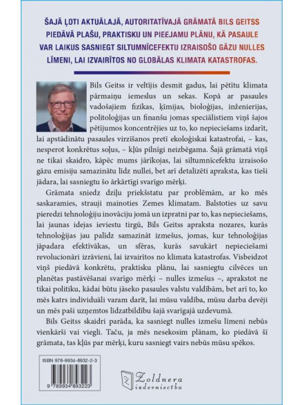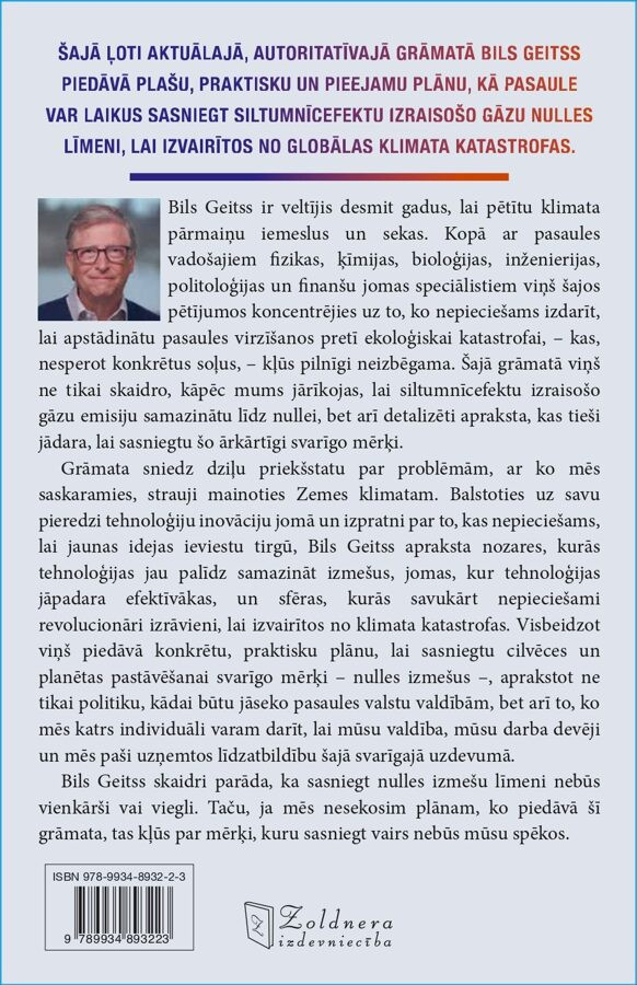 Šajā ļoti aktuālajā, autoritatīvajā grāmatā Bils Geitss piedāvā plašu, praktisku un pieejamu plānu, kā pasaule var laikus sasniegt siltumnīcefektu izraisošo gāzu nulles līmeni, lai izvairītos no globālas klimata katastrofas.