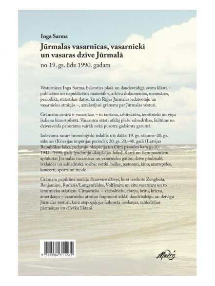 Grāmatas autore ir vēsturniece Inga Sarma. Balstoties plašā un daudzveidīgā avotu klāstā - publicētos un nepublicētos materiālos, arhīvu dokumentos, memuāros, periodikā, statistikas datos, kā arī Rīgas Jūrmalas iedzīvotāju un vasarnieku atmiņās - , uzrakstījusi grāmatu par Jūrmalas vēsturi. Grāmatas centrā ir vasarnīcas - to tapšana, arhitektūra, iemītnieki un viņu ikdiena kūrortpilsētā.