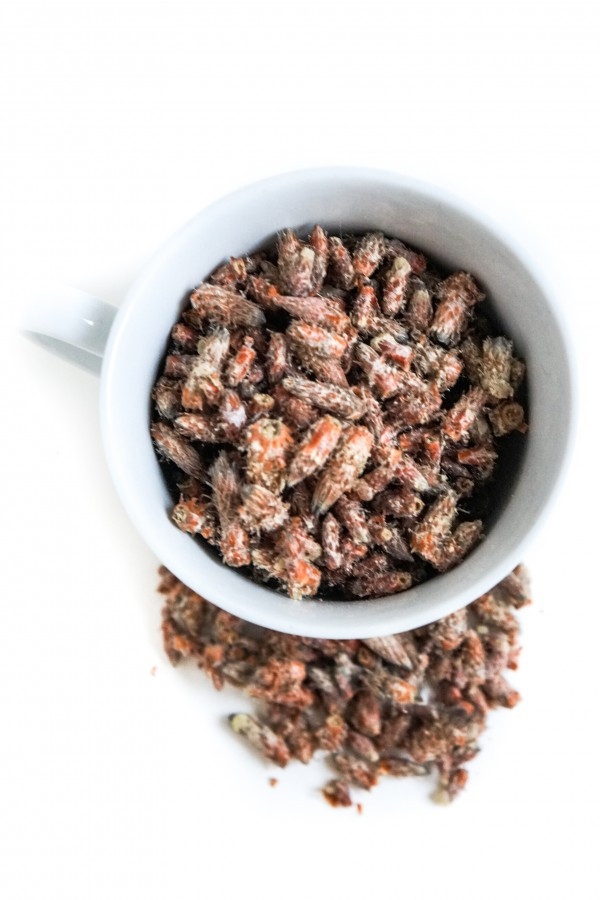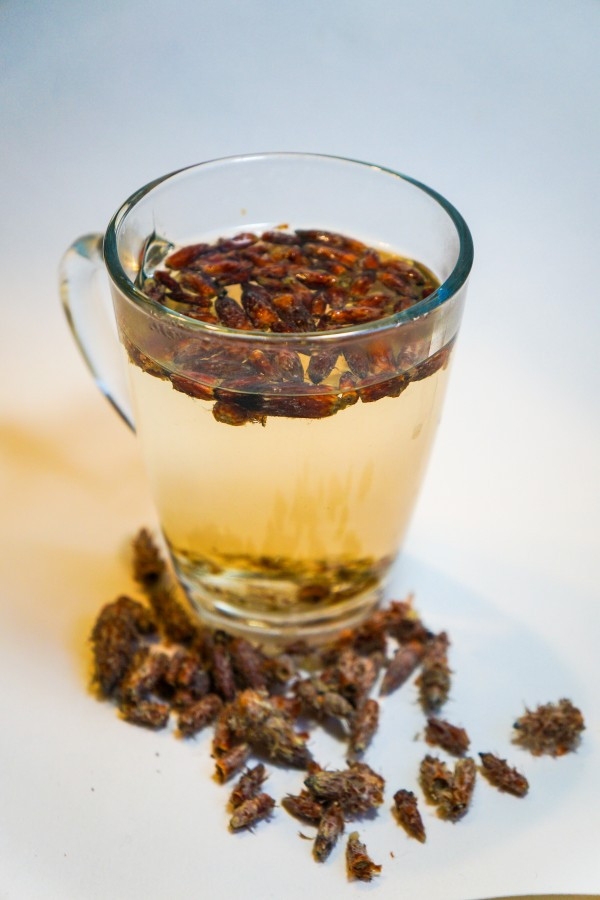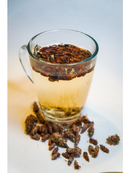 Vecpiebalgas pļavās un mežos rokām ievākta, nesmalcināta beramā priežu pumpuru tēja.