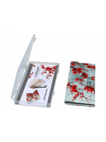 Korpuss ir izgatavots no augstas kvalitātes eko ādas. Cietā konstrukcija ļoti labi aizsargā brilles no bojājumiem. Viegls un praktisks futrālis, kas aizņem ļoti maz vietas, kad korpuss ir salocīts. Iepakots plastmasas iepakojumā ar 2 klipšiem.