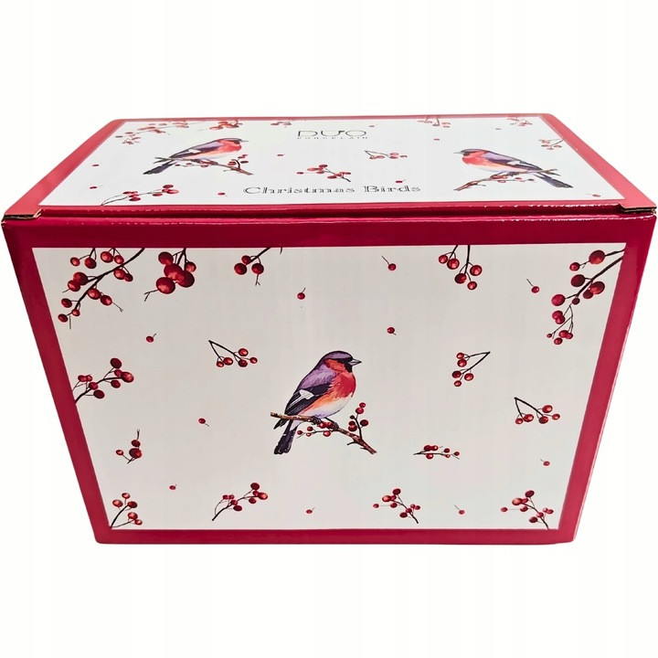 • Eleganta porcelāna krūze, kas dekorēta ar krāsaina putna motīvu, kas sēž uz zariņa ar daudziem maziem augļiem - kompozīcija uzsver Ziemassvētku noskaņu un rada harmonisku veselumu, kas piesaista acis