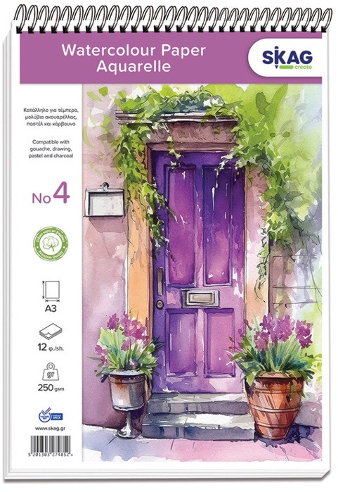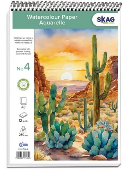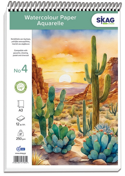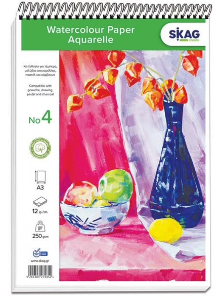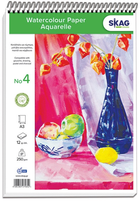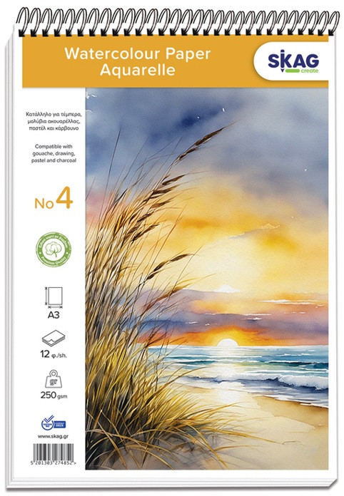 Akvareļu bloks.līmets 240*178mm 15lp 300g/m2 038