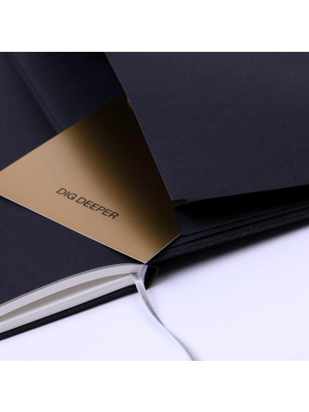 Radīta tiem, kuriem svarīga ir ne tikai vizuālā, bet arī sajūtu pasaule. Tās īpašā vāka tekstūra aicina uz pieskārienu, radot siltu un personisku saikni ar Tavu rakstīšanas rīku. Askētiskais dizains bez liekām detaļām uz vāka nodrošina to "privātuma" sajūtu, kas nepieciešama, lai ļautos netraucētam domu lidojumam.
