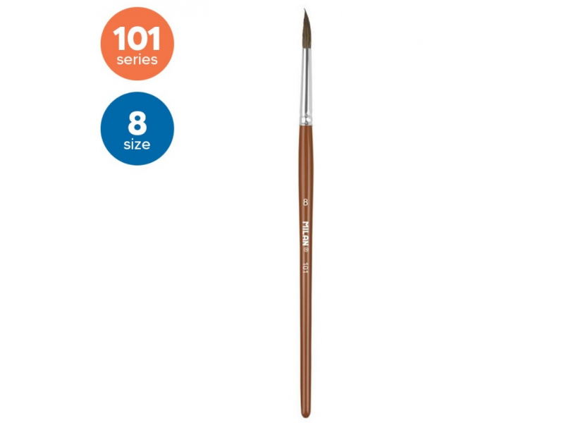 Apraksts Milan 101 otiņa Nr.8 ir apaļa mākslas otiņa, kas izgatavota no dabīgas ponija spalvas. Mīkstie un izturīgie sari nodrošina vienmērīgu krāsas uzklāšanu un ērtu kontroli, padarot otiņu piemērotu gan smalkām līnijām, gan platākiem triepieniem. Lieliska izvēle dekoratīvajiem darbiem, mākslas projektiem un skolai