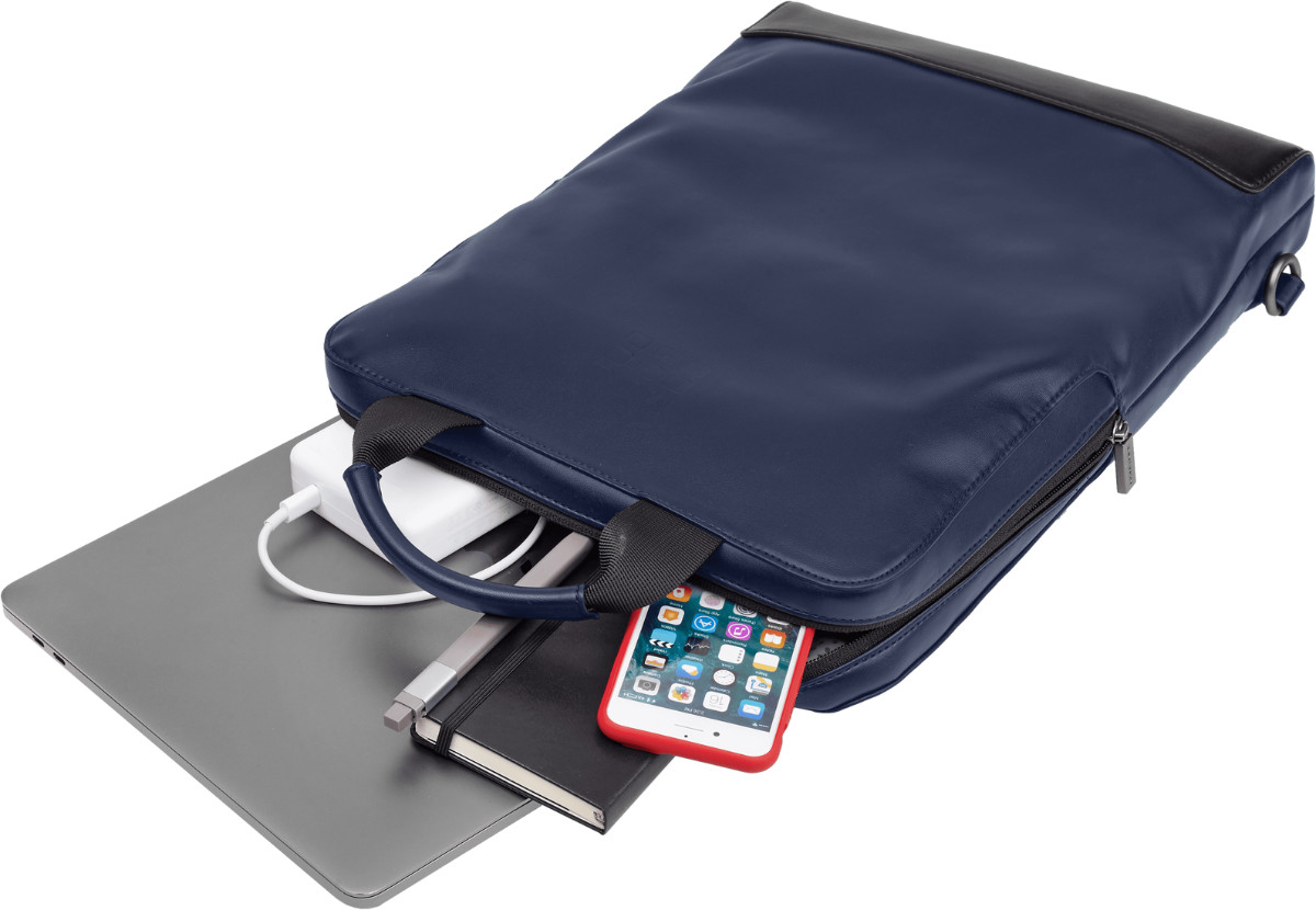 Pārnēsājiet savas digitālās ierīces un mobilo darbvietu piezīmjdatora iedvesmotā stilā. Glītajai, vieglai un izgatavotai no mīkstiem, taustāmiem materiāliem, klasiskajai vertikālajai ierīču somai ir dažādas kabatas. Šis populārais vertikālais formāts ir diskrēts un funkcionāls profesionāls kompanjons - viedierīču soma jūsu viedajai mobilajai darbvietai.