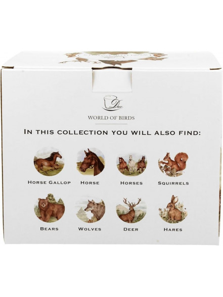 Izturīgs un elegants. Mazgājama trauku mazgājamā mašīnā, mikroviļņu krāsnī. Izmēri (A x P): 100 x 125 mm, diametrs: 9,3 cm, maks. Pildījuma tilpums: 400 ml, Materiāls: New Bone China porcelāns, Kolekcija: Dzīvnieki, Sērija: DZĪVNIEKU PASAULE, Sērija: LĀČI. Svars: 260g Dāvanu kastīte