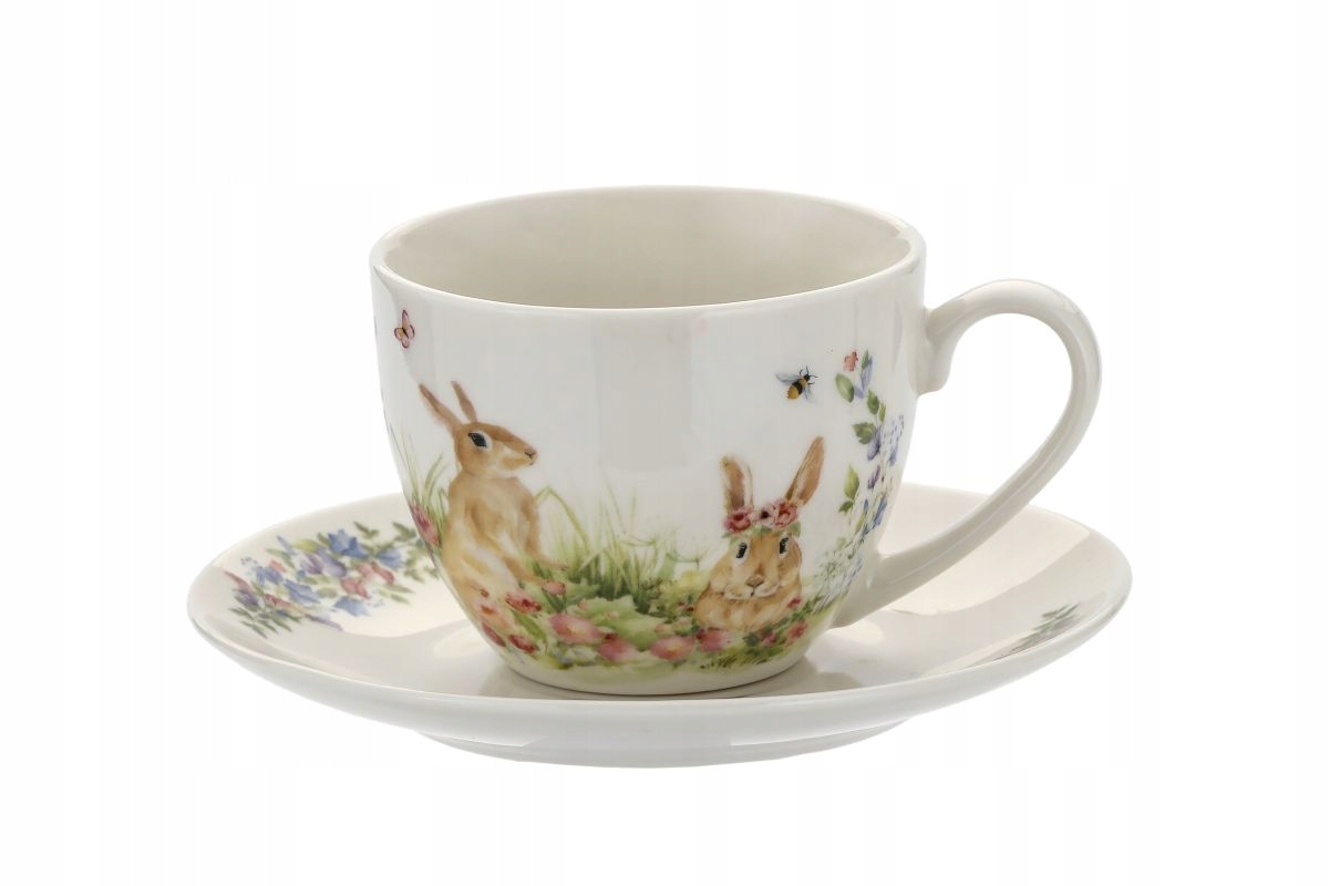 Krūze 325ml ar puntu un ziediem, gaiši zila