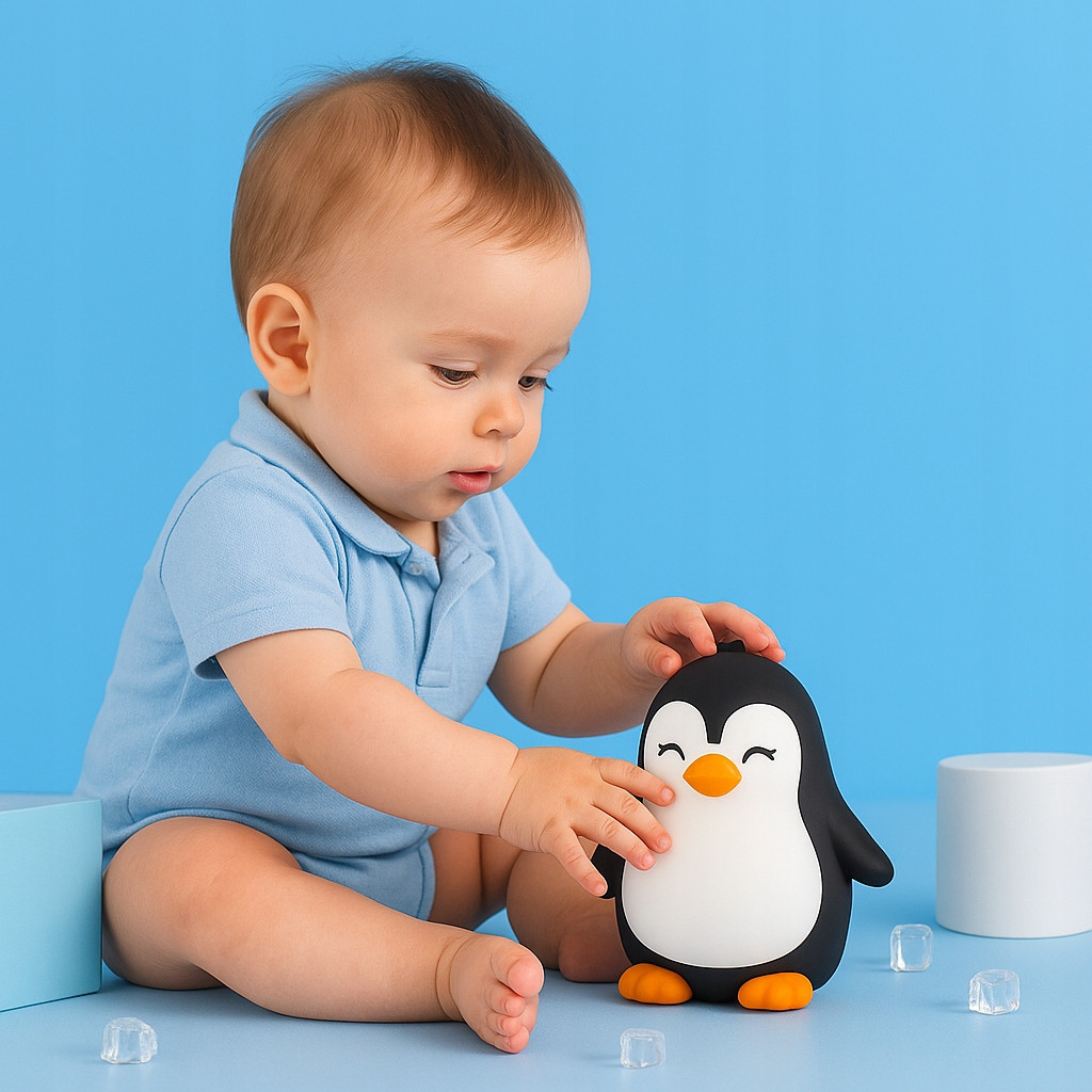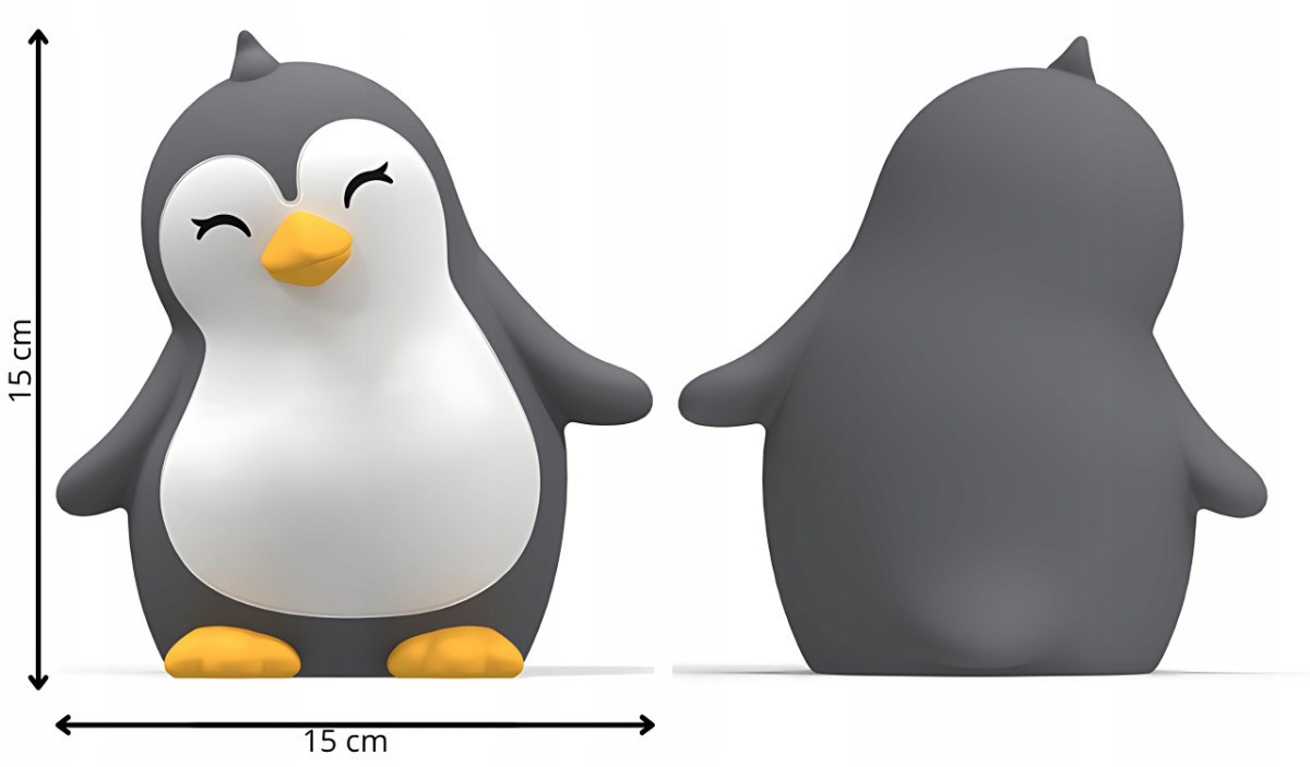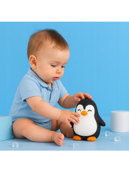Šī unikāla naktslampa gudra pingvīna formā slēpj pārsteigumu! Kad tas ir ieslēgts, ap pingvīna kaklu parādās šalle, kas piešķir lampai šarmu un rada mājīgu atmosfēru bērna istabā. Lampa ir izgatavota no droša, mīksta materiāla, padarot to izturīgu un patīkamu pieskārienam. Mīkstā LED gaisma veicina aizmigšanu, nesāpē acis un rada mierīgu atmosfēru, kas lieliski piemērota labai naktij.