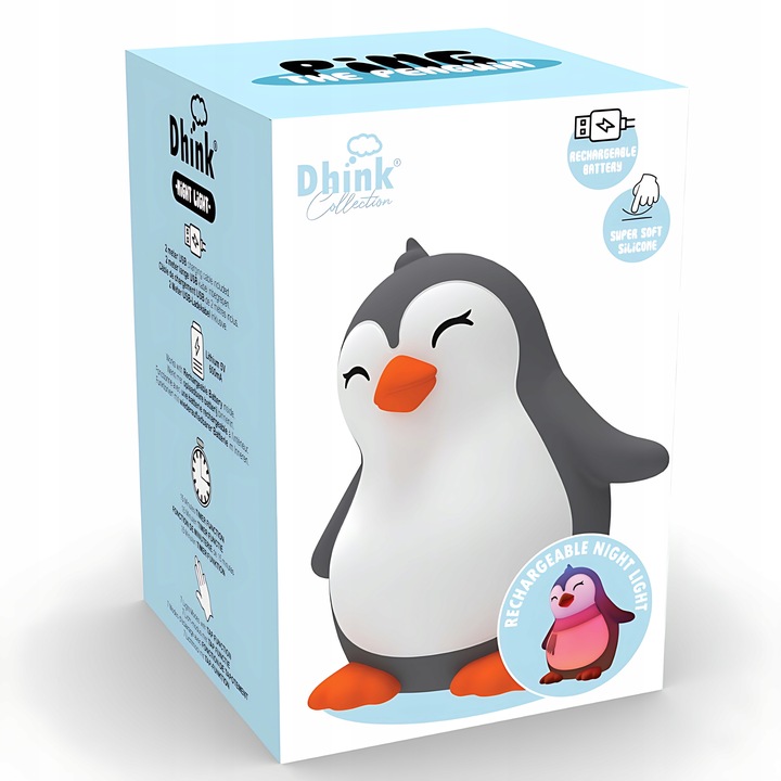 Silikona pingvīna nakts gaisma ar burvju šalli ar nosaukumu Ping By Dhink zīmols