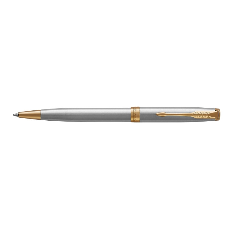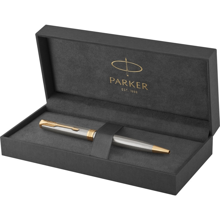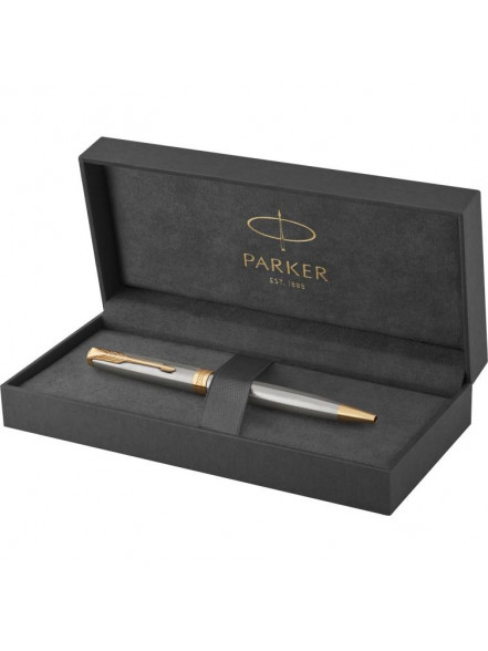 Izbaudiet Parker raksturīgo stilu ar Sonnet nerūsējošā tērauda GT lodīšu pildspalvu — modernu pildspalvu dizaina šedevru. Tās mūžīgo, mūsdienīgo stilu papildina eleganta melna kastīte, pildspalvas korpuss ar greznu zelta apdari.
