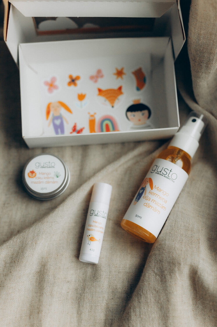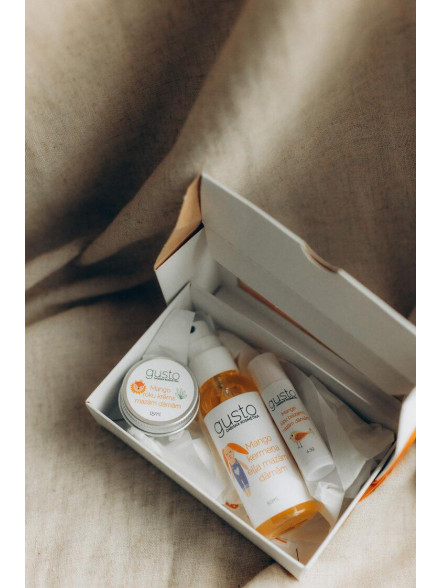 Mango roku krēms mazām dāmāmMaigi kopj roku ādu, padarot to veselīgu un zīdainu. Kakao un šī sviests, kokosriekstu un saldo mandeļu eļļas apvienotas ar bišu vasku aizsargā ādu no aukstuma un vēja nelabvēlīgās ietekmes Lietošana: uzklāj uz tīras roku ādas, maigi iemasē.INCI: Aqua, Theobroma Cacao Seed Butter, Butyrospermum Parkii Butter, Prunus Amygdalus Dulcis Oil, Cocos Nucifera Oil, Glyceryl Citrate/ Lactate/ Linoleate/ Oleate, Cetearyl Alcohol, Cera Alba, Glyceryl Stearate, Sodium Stearoyl Lactate, Glycerin, Coconut Alkanes (and) Coco caprylate caprate, Tocopherol , Glyceryl Caprylate , Sodium Levulinate, Sodium Anisate, Beta – Carotene, Mango fragrance, Citronellol*, Geraniol * / * from fragrance 15ml Mango ķermeņa eļļa mazām dāmāmMaiga un samtaina ķermeņa eļļa, kas mīkstina, mitrina un nomierina ādu. INCI: Capric triglyceride, Prunus Armeniaca Kernel Oil, Mango Fragrance, Topocherol, Citronellol*, Geraniol*/ *from fragrance Mango lūpu balzams mazām dāmāmMaigām, no aukstuma un vēja pasargātām lūpām un neatvairāmam smaidiņam. INCI: Theobroma Cacao Seed Butter, Cera Alba, Cocos Nucifera Oil, Caprylic/Capric Triglyceride (and) Hydrogenated Rapeseed Oil, Tocopherol, Beta – Carotene, Citrus Aurantium Dulcis Peel Oil, Mango fragrance, Citronellol*, Geraniol * / *from fragrance |