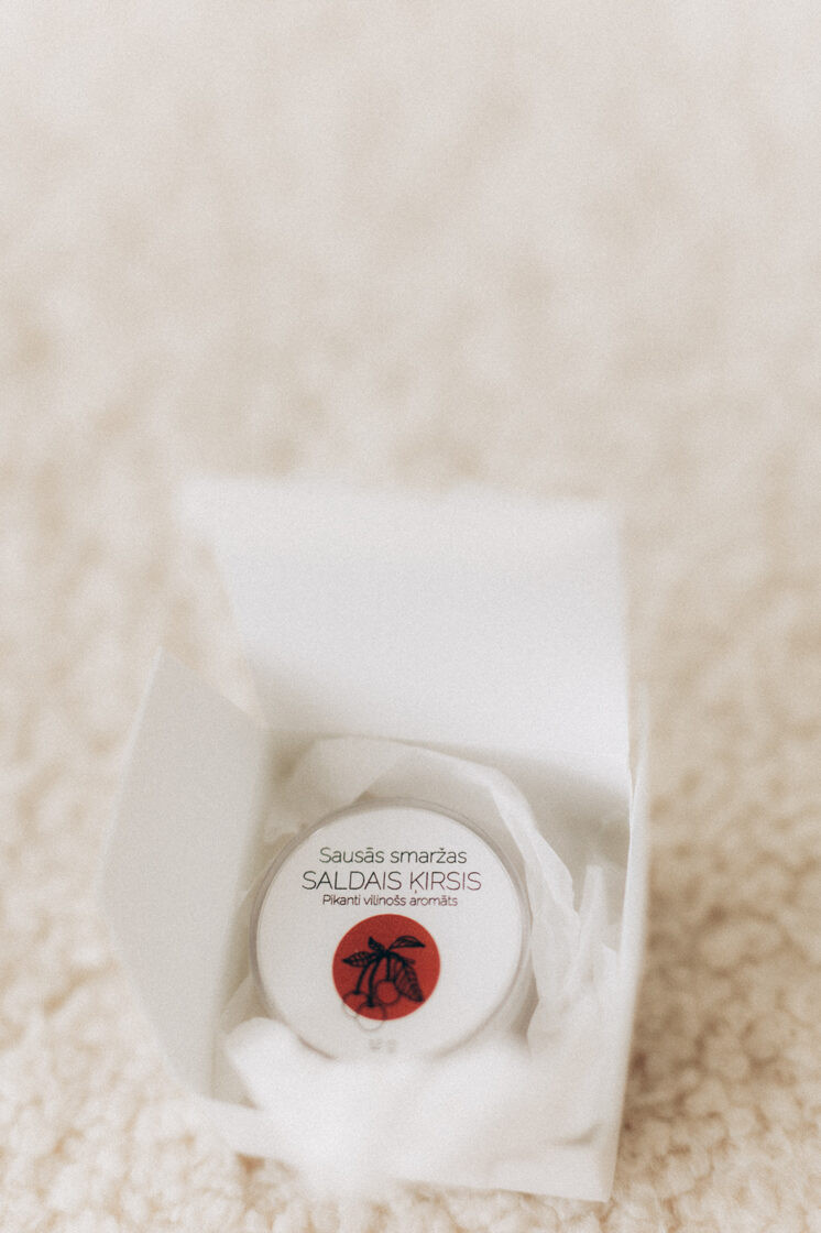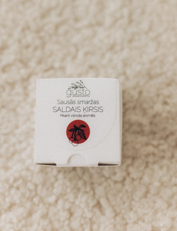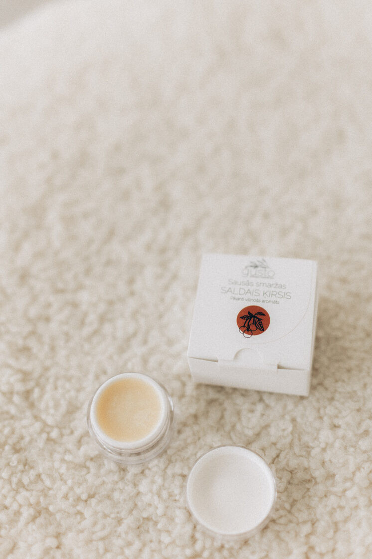 INCI: Butyrospermum Parkii Butter, Euphorbia cerifera (Candelilla) Wax, Cherry Fragrance oil, Theobroma Cacao Seed Butter, Caprylic/Capric Triglyceride (and) Hydrogenated Rapeseed Oil, Tocopherol, Eugenol *, Linalool *, d-Limonene* / *fragrance oil