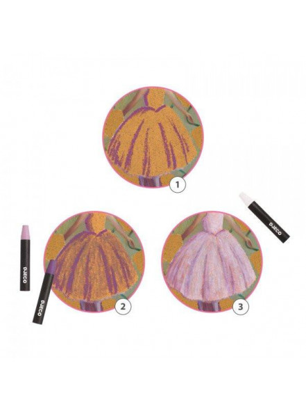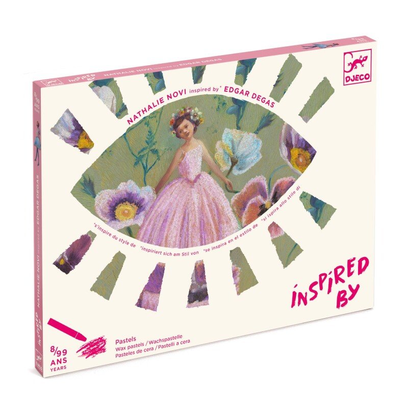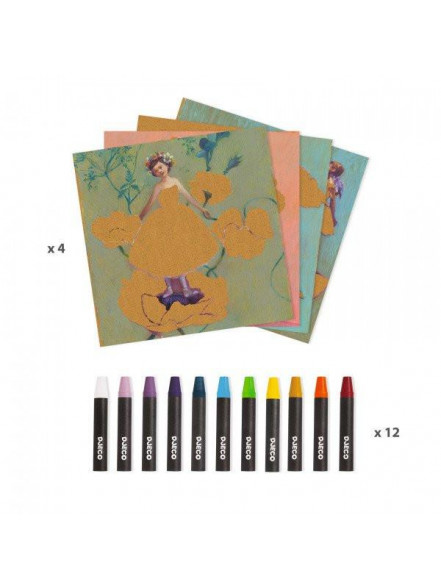Krāsošana ar pasteļkrītiņiem, izkrāsojot krāšņās ilustrācijas, kas radītas, iedvesmojoties no pasaulslavenā impresionista Edgara Degā (Edgar Degas). Bērni pakāpeniski papildina zīmējumus, ar krāsām piešķirot attēliem gaismas un ēnas, un padarot tos dzīvīgākus. Lielisks veids, kā iepazīt slaveno mākslinieku un impresionisma mākslas virzienu. Aktivitāte piemērota pat pieaugušajiem, jo nekad nav par vēlu iepazīt krāšņo mākslas pasauli! Komplektā ietilpst 4 ilustrētas pamatnes (20 x 20 cm), 12 eļļas krītiņi un detalizēta pamācība, kā sasniegt izcilu rezultātu. Instrukcijas bukletā atradīsiet arī vērtīgu informāciju par Edgaru Degā un impresionisma mākslas virzienu. Košas, kvalitatīvas krāsas ar augstu pigmentācijas līmeni.