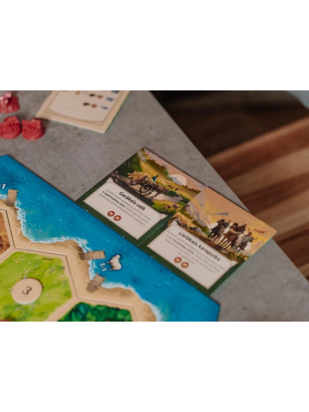 Katrā spēles gājienā tiek mesti kauliņi, lai noteiktu, kuri resursi tiek ražoti un kuri spēlētāji tos iegūst. Resursi tiek tērēti, lai būvētu objektus un iegādātos attīstības kārtis, kas viss spēlētājiem dod uzvaras punktus. Tev nav īsto resursu? Neuztraucies! Iespējams, varēsi tos iemainīt no citiem spēlētājiem. Uzvar spēlētājs, kurš pirmais iegūst 10 punktus.