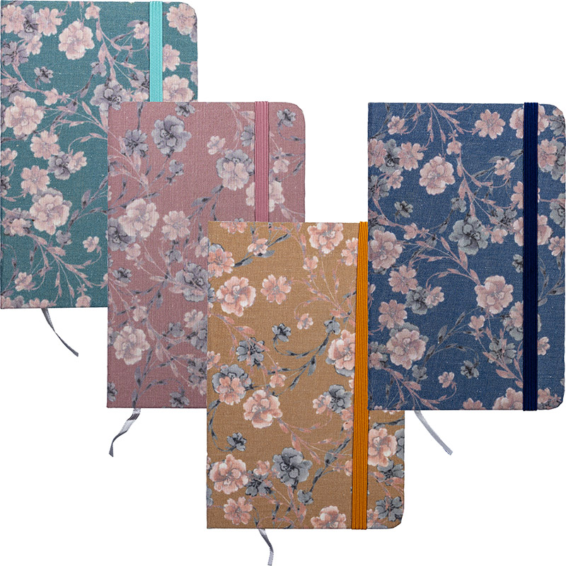 Bloknots A7 līniju, 80 lpp., cietos vākos ar gumiju Flowers