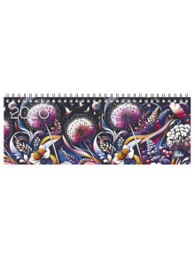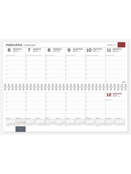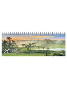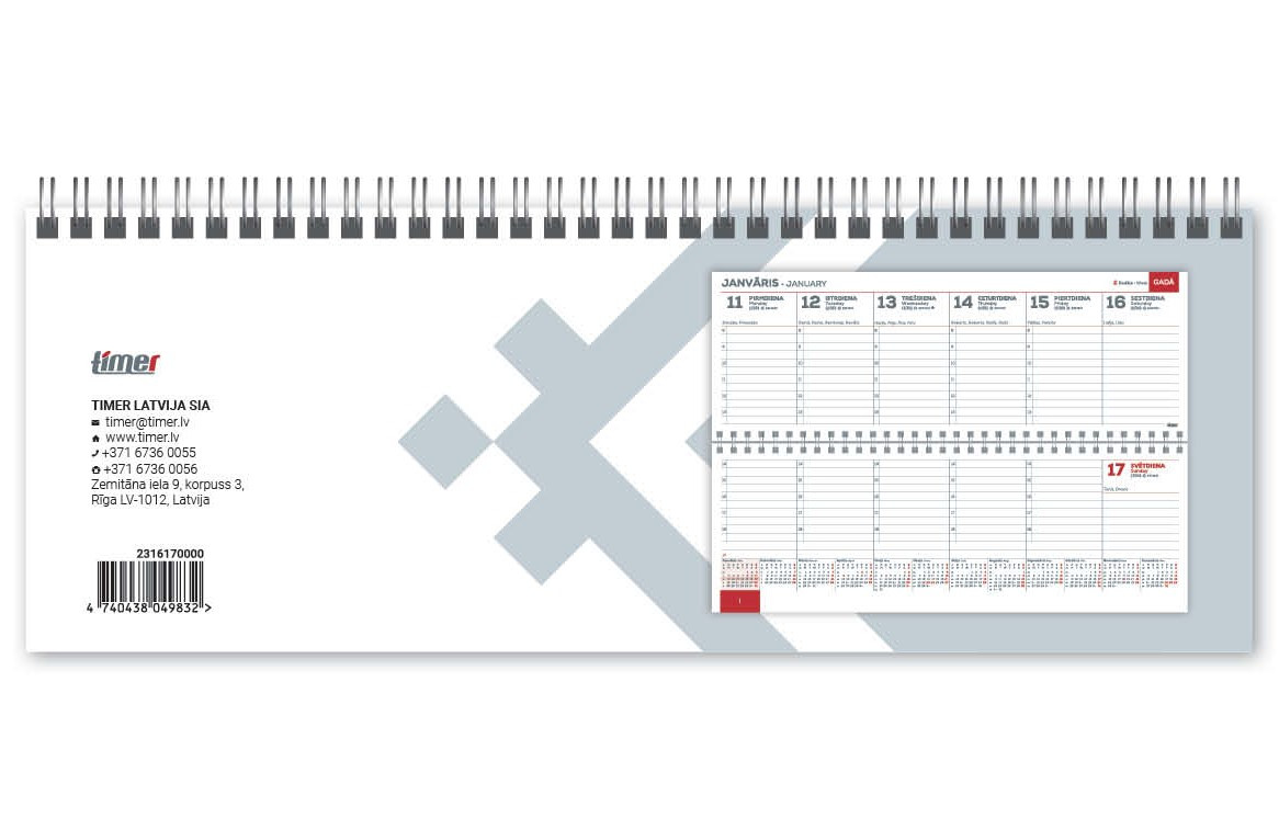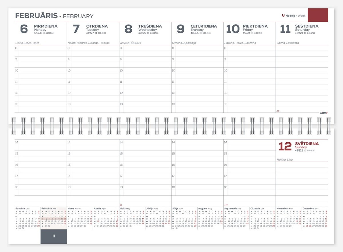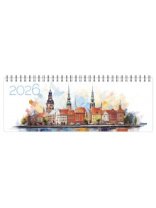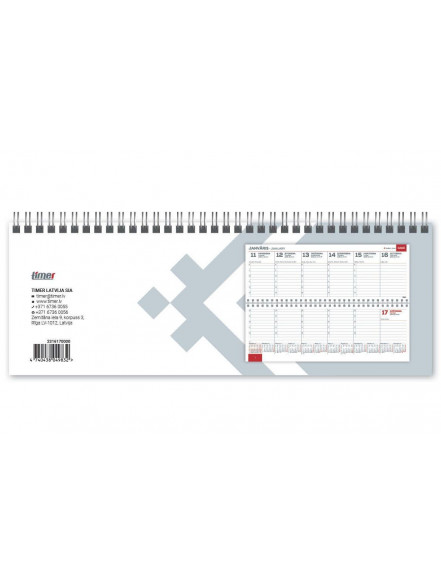 Izmērs: 29.5 x 11.0 cm Lapas izmērs: 29.0 x 10.3 cm Valodas: Latviešu un angļu Papildinformācija: Kartona vāks, ar spirāli Apraksts: Visos galda kalendāros MEMO ir gada plāns, viena nedēļa atvērumā, nedēļu numerācija, valsts svētku un atzīmējamās dienas, karogu dienas, vārda dienas, norādīts gadalaiku sākums, saullēkta un saulrieta laiki, mēness fāzes, zodiaka zīmju maiņas dienas, kontaktu lapas.