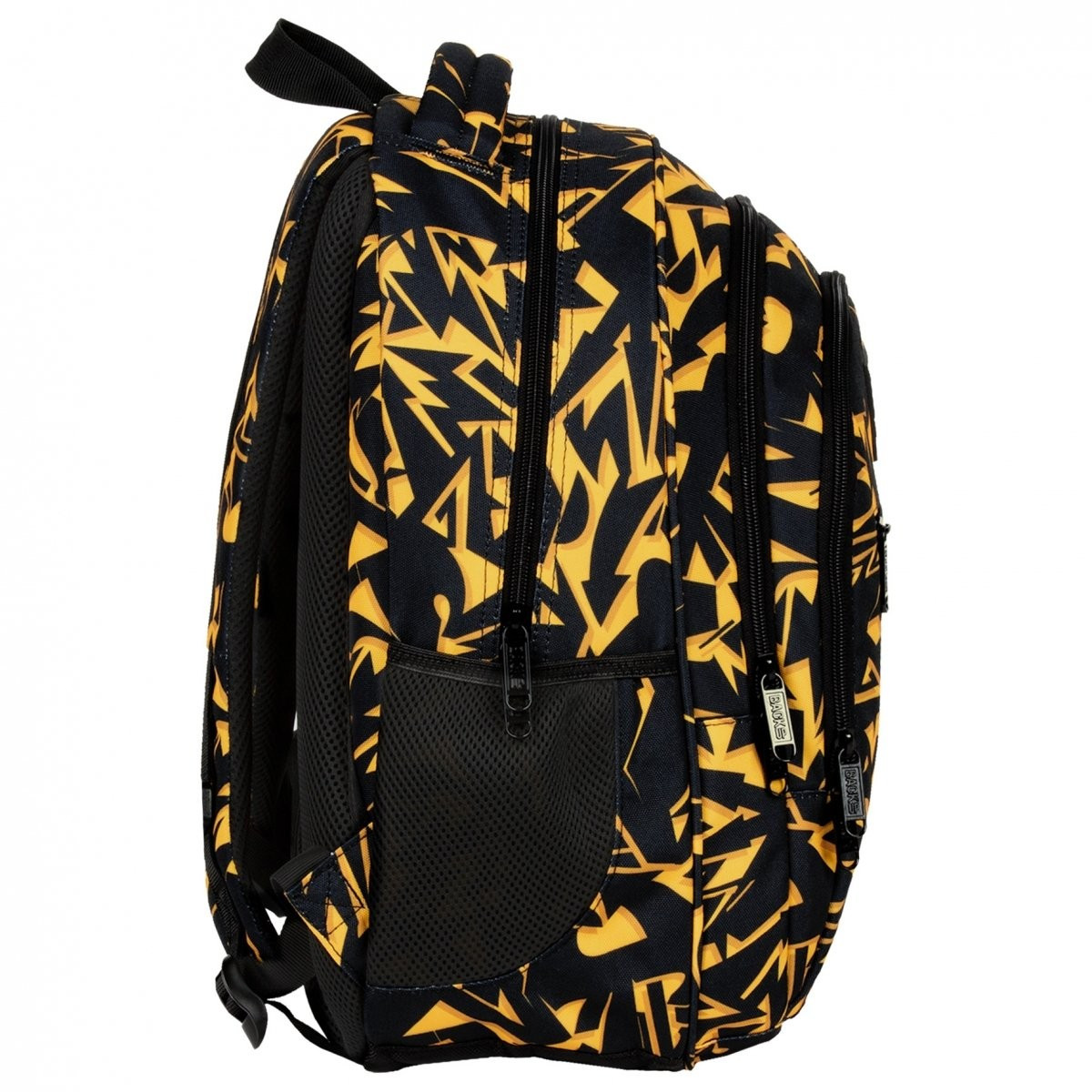 Ietilpīga un funkcionāla skolas mugursoma patiks ikvienam. Mugursomu raksturo rūpīga meistarība un moderns modelis. Materiāls, no kura šūta mugursoma, ir ūdensizturīgs un izturīgs. Mugursoma ir ietilpīga, tai ir 3 lieli nodalījumi un neliela priekšējā kabata. Vienā no nodalījumiem ir liela cilne klēpjdatoram un planšetdatoram; otrais ietilpīgais nodalījums arī viegli atbilst A4 formātam un tam ir kabata ar rāvējslēdzēju; Trešajam ir ērts organizators ar karabīni. Sānos mugursomai ir divas atvērtas kabatas ūdens pudelei vai ūdens pudelei. Visi rāvējslēdzēji ir pabeigti ar lieliem parocīgiem vilcējiem. Mugursomas aizmugure ir labi stīvināta un pārklāta ar elpojošu materiālu. Plecu siksnas ir platas, mīksti polsterētas un apakšpusē pārklātas ar elpojošu materiālu. Tam ir arī regulējama krūšu kaula siksna, kas uzlabo smagāku svaru pārvadāšanas komfortu. Mugursomas apakšdaļa ir pastiprināta ar putām. Augšpusē mugursomai ir iešūts mīksti polsterēts rokturis nēsāšanai un papildu rokturis pakāršanai. Tam ir diskrēti atstarotāji, kas nodrošinās drošību uz ceļa. Ar putām pastiprināta priekšējā kabata aizsargā saturu no bojājumiem.