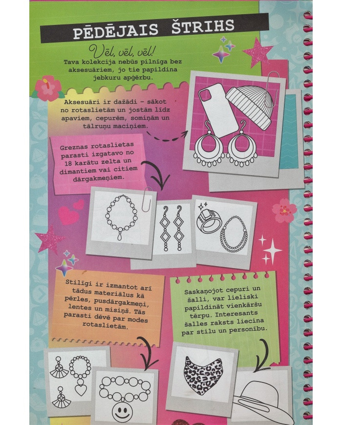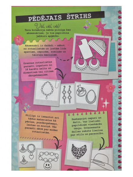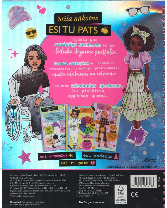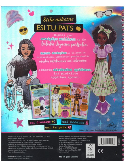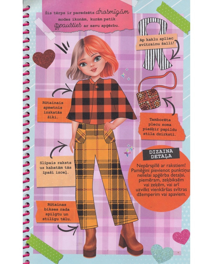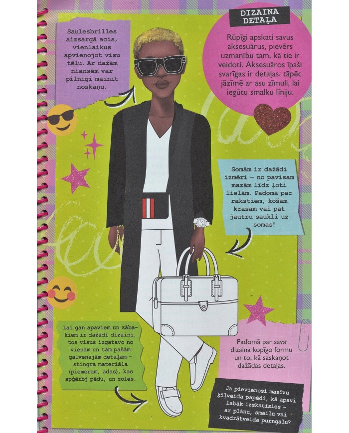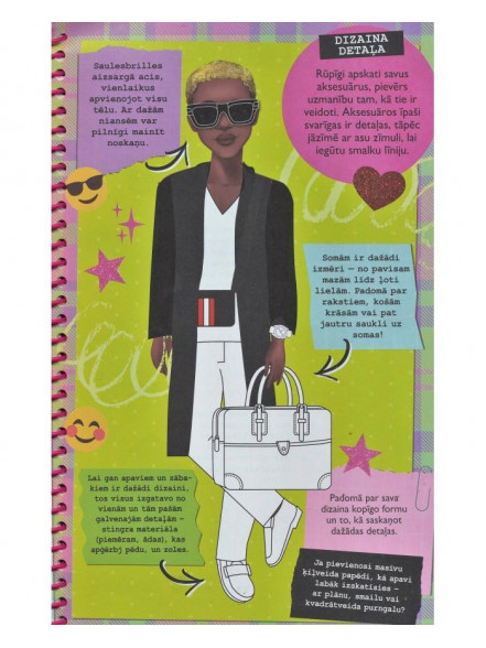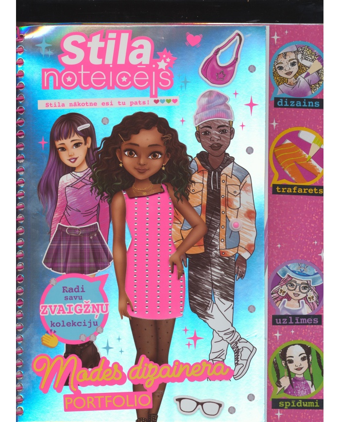 Mode spilgti atklāj katra cilvēka personību neatkarīgi no tā, vai viņš ir tās veidotājs vai tikai valkā apģērbu. Šajā grāmatā tu apgūsi modes dizaina prasmes un to, kā savos zīmējumos paust ikoniskas idejas. Šajā portfolio ir dizainera uzmetuma burtnīca, uzlīmes un spīdumi, stila trafareti.
