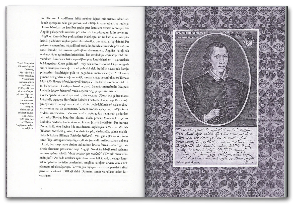 16./17. gs. mijas angļu dzejnieks Džons Donns bija autors, kas izteikti atšķīrās no priekšgājējiem un spilgti izcēlās sava laika literatūrā. Kā skaidro sastādītāja Anna Auziņa, “Donna oriģinalitāte iespaidoja laikabiedrus, lai gan reti kurš spēja pilnībā novērtēt viņa dzejas valodu tās sarežģītības dēļ. Donna dzīves laikā ir publicēti ne vairāk par septiņiem astoņiem dzejoļiem, un tikai divi ar viņa vārdu. Donna dzejas manuskripti ceļoja no rokas rokā un tika publicēti tikai pēc viņa nāves, kad uz neilgu laiku Donns kļuva par autoritāti. Pēc tam to augstu novērtēja tikai 20. gadsimta sākumā, kad vairāki dzejnieki, tostarp Viljams Batlers Jeitss un Tomass Stērns Eliots, atklāja, cik augstā līmenī Donna tekstos savienojas kaisle un reliģiski pārdzīvojumi, intelekts un ķermeniskas metaforas.”