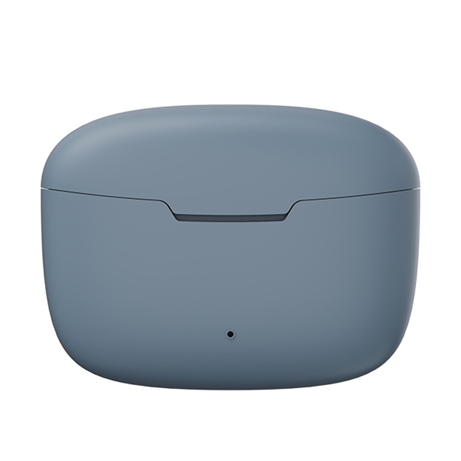 Plastmasas austiņas. Uzlādes futrālis ir izgatavots no izturīgas plastmasas